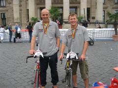 Niko (links) konnte mit seiner Leistung auf ganzer Linie überzeugen, solide Schwimm- und Rad- sowie starke Laufleistung brachten Platz 26 in einer Zeit von 2:09:13.
